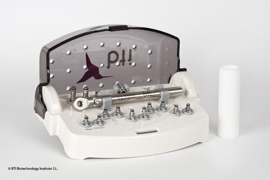 The kit contains a total of five extractors indicated for the extraction of osseointegrated implants when they are no longer functional or are unnecessary in a new prosthetic situation.